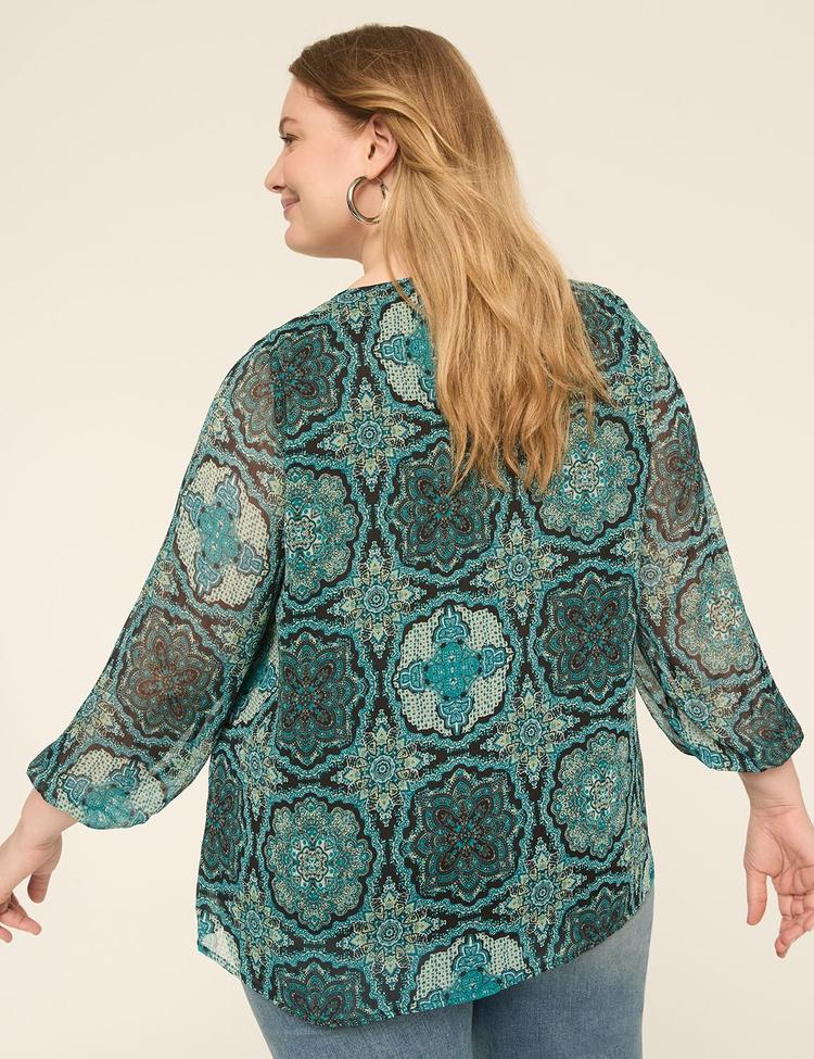 Available in Plus Size We added most-boosting details like a tassel tie neck and blouson sleeves, then added feel-good crinkle chiffon for a popover to wear over and over. FIT: Classic. Designed for curves and a not-too-tight, not-too-loose, just-right fit. Front Length (On Body): 30.5" Standard length FEATURES: Notch neck with tassel self-tie detail Long sleeves with covered elastic cuffs FABRIC: Soft-textured, breathable crinkle chiffon Machine Wash 100% Polyester Item Number #412802 Imported Plus Size Top ". Plus Size Tassel-Tie Notch-Neck Popover Blouse, in Blue Medallion, 18/20, Women's, Lane Bryant