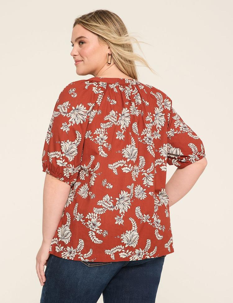 Available in Plus Size A top that's all about the details - the puffed elbow sleeves, tie neck and smooth poplin come together for your new dress-up-or-down fave. FIT: Classic. Designed for curves and a not-too-tight, not-too-loose, just-right fit. Front Length (On Body): 29.5" Standard length FEATURES: Split neck with self tie Elbow length sleeves with covered elastic cuffs FABRIC: Smooth poplin fabric Machine Wash 100% Cotton Item Number #412492 Imported Plus Size Top ". Plus Size Elbow-Sleeve Tie-Neck Popover Blouse, in Burnt Orange Floral, 16, Women's, Lane Bryant