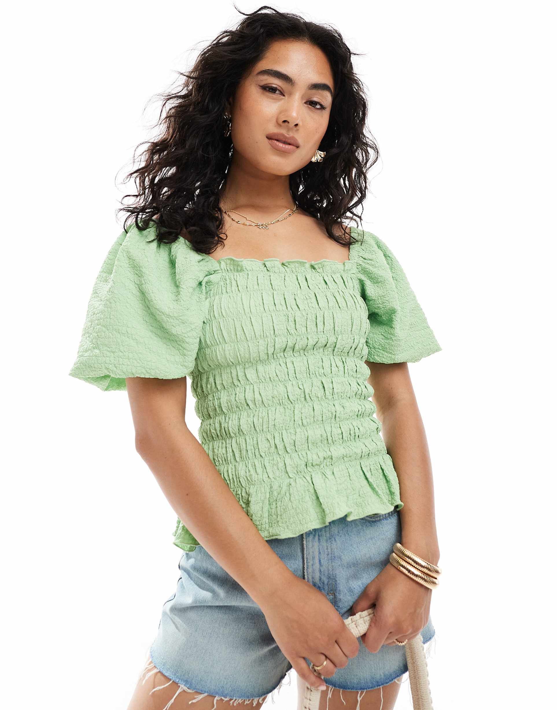 MISS SELFRIDGE SHIRRED DETAIL BLOUSE IN GREEN