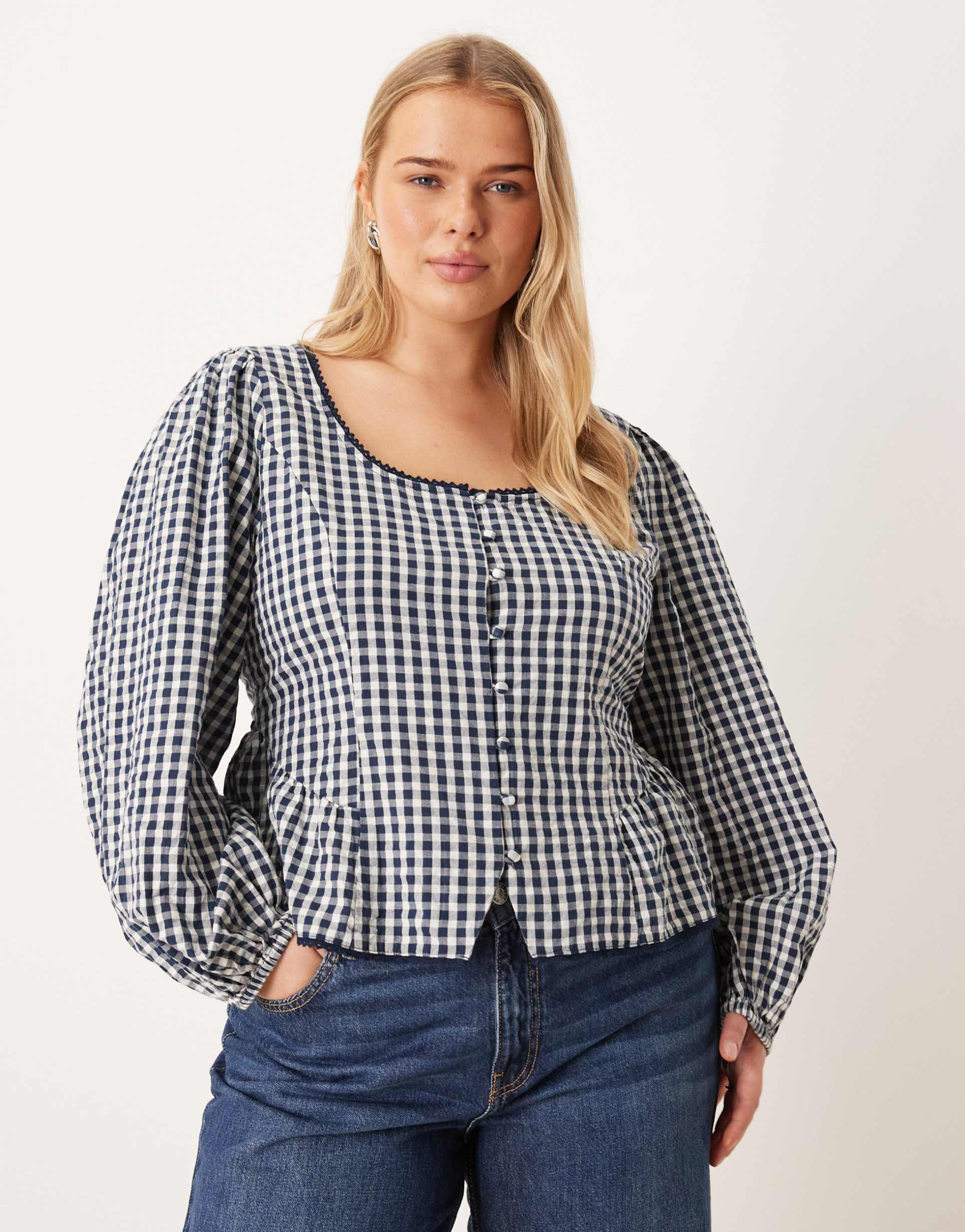 plus size gingham blouse