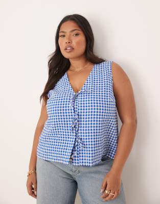 NOBODY'S CHILD PLUS TESSA TIE DETAIL SLEEVELESS TOP IN BLUE CHECKERBOARD