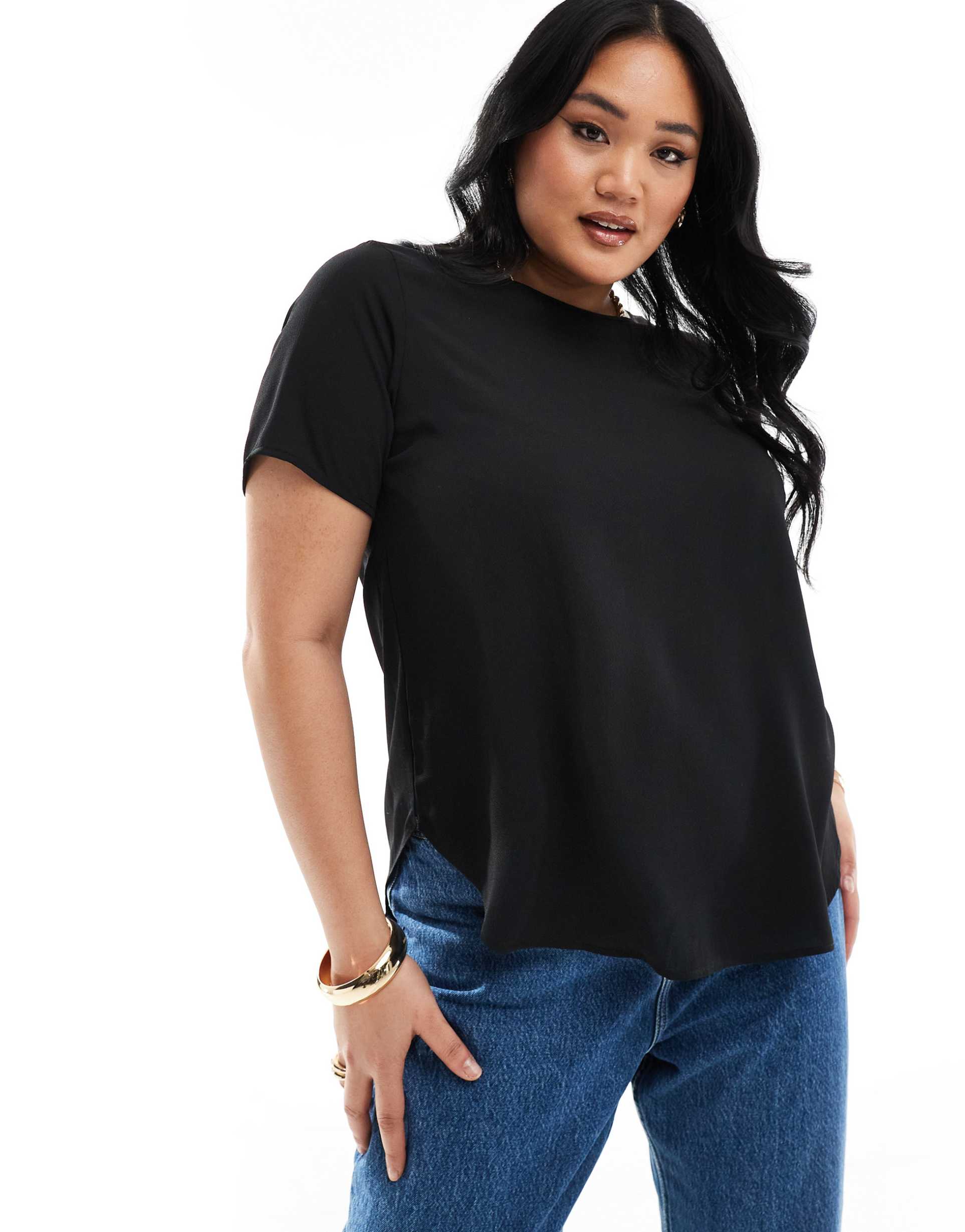 ONLY CURVE SHORT SLEEVE BLOUSE IN BLACK