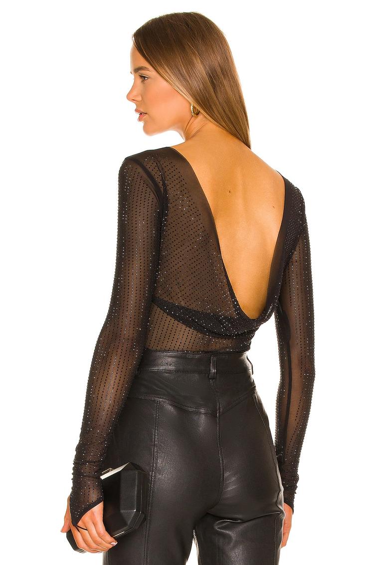 Sheer mesh fabric and all-over sequin embellishments create an elegant and sexy silhouette with this fitted shell blouse. Featuring a round neckline and long regular sleeves with finger straps at the cuffs, the blouse also boasts a dramatic open back for a chic modern twist. Crafted from a polyester-elastane blend with viscose lining, its hip-length cut offers versatile wear for night outs, cocktail parties, and romantic date nights. The subtle shimmer and sheer draping add a sophisticated edge to any evening ensemble.