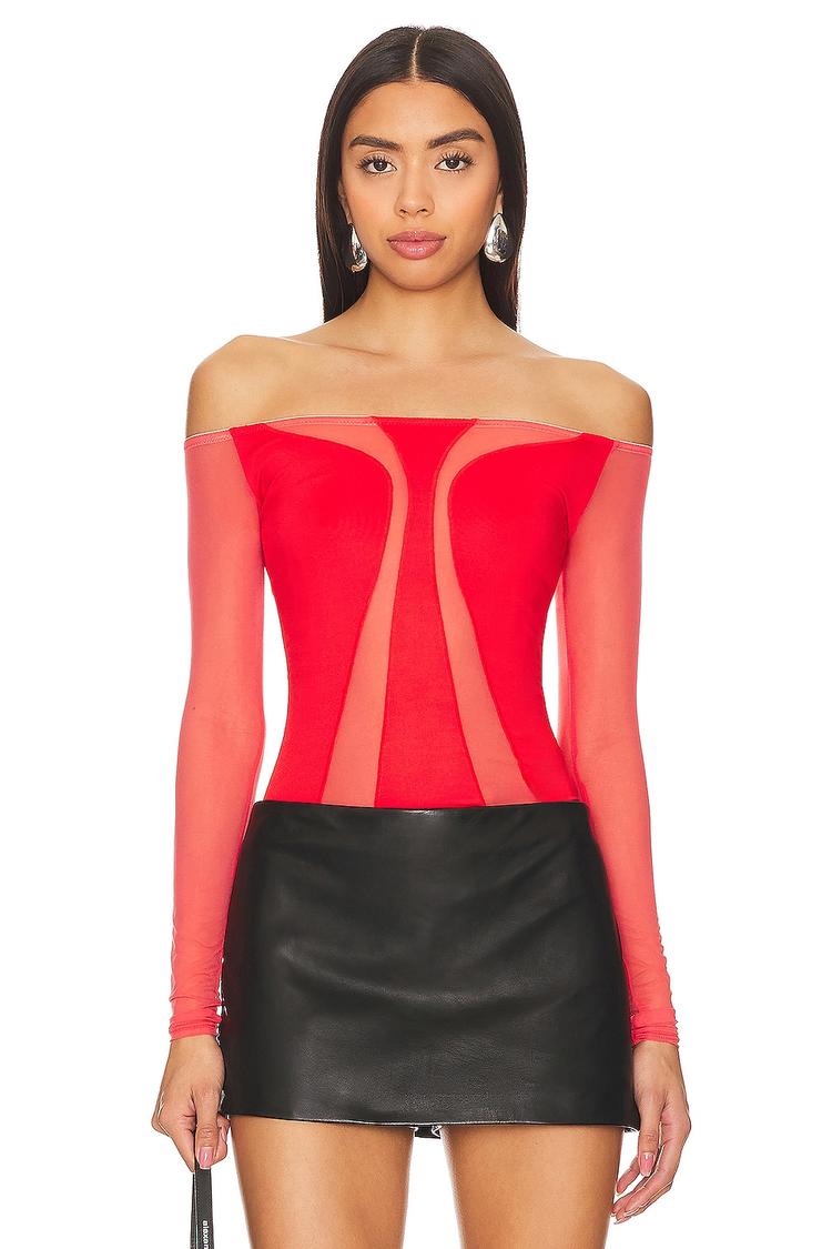 Experience bold, city-ready glamour in Ow Collection’s Swirl Blouse. This red nylon-blend top features an off-shoulder neckline and long sheer mesh sleeves with intricate swirl-panel contouring along the bodice. The cropped, body-skimming silhouette creates a night-out-ready profile, while the translucent panels deliver a daring, modern edge. Wear it with a sleek leather mini for date night, or pair with high-waisted denim for a chic daytime look. The versatile top pairs well with accessories for a party or concert, and its figure-flattering fit makes a strong style statement wherever you go.