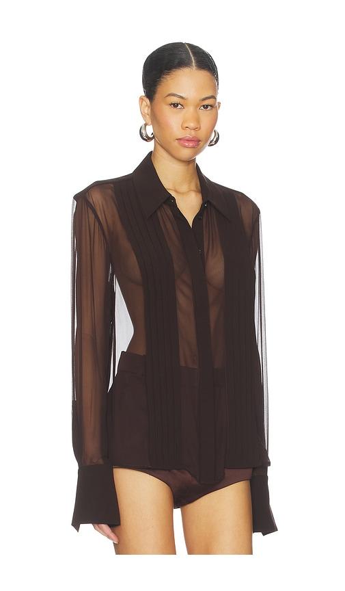 SANS FAFF X REVOLVE X REVOLVE MEGHAN PANELLED SILK BLOUSE IN CHOCOLATE.