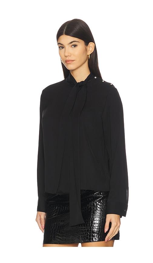 THEORY SIDE TIE NECK BLOUSE IN BLACK.