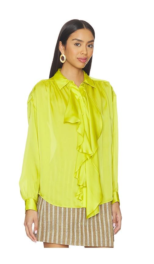 ULLA JOHNSON GESTURE LONG SLEEVE SILK BLOUSE IN GREEN.