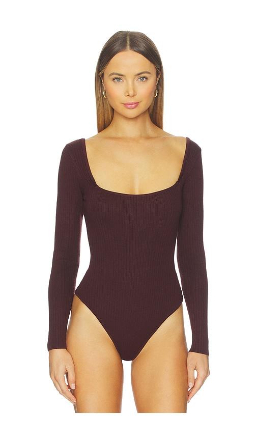 ALL THE WAYS AMALIA SQUARE NECK BODYSUIT IN BROWN.