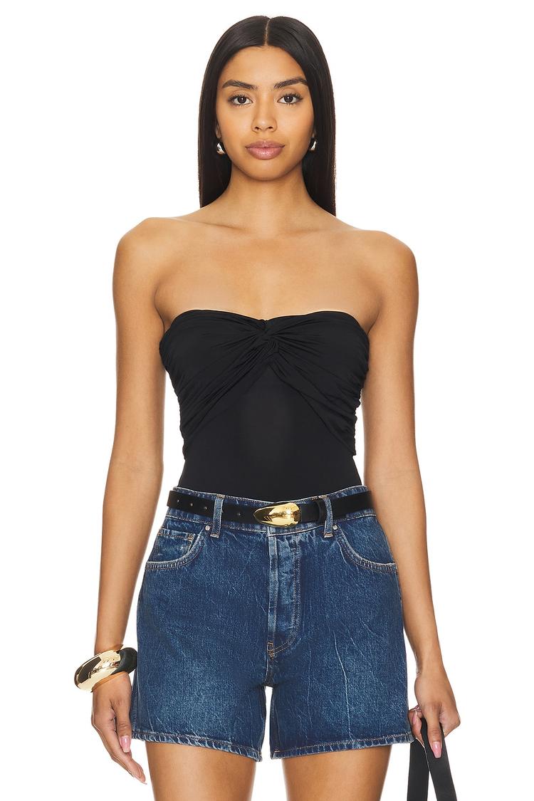Effortless elegance meets comfort in this fitted black bodysuit crafted from a soft viscose-spandex blend. Featuring a strapless straight neckline and sleeveless design, it offers a sleek silhouette enhanced by delicate ruching across the front bodice. The cropped length pairs perfectly with high-waisted bottoms for a chic summer look. Ideal for casual outings, brunch dates, or evening events, this minimalist piece combines subtle design details with versatile styling options, making it a must-have staple for your wardrobe.