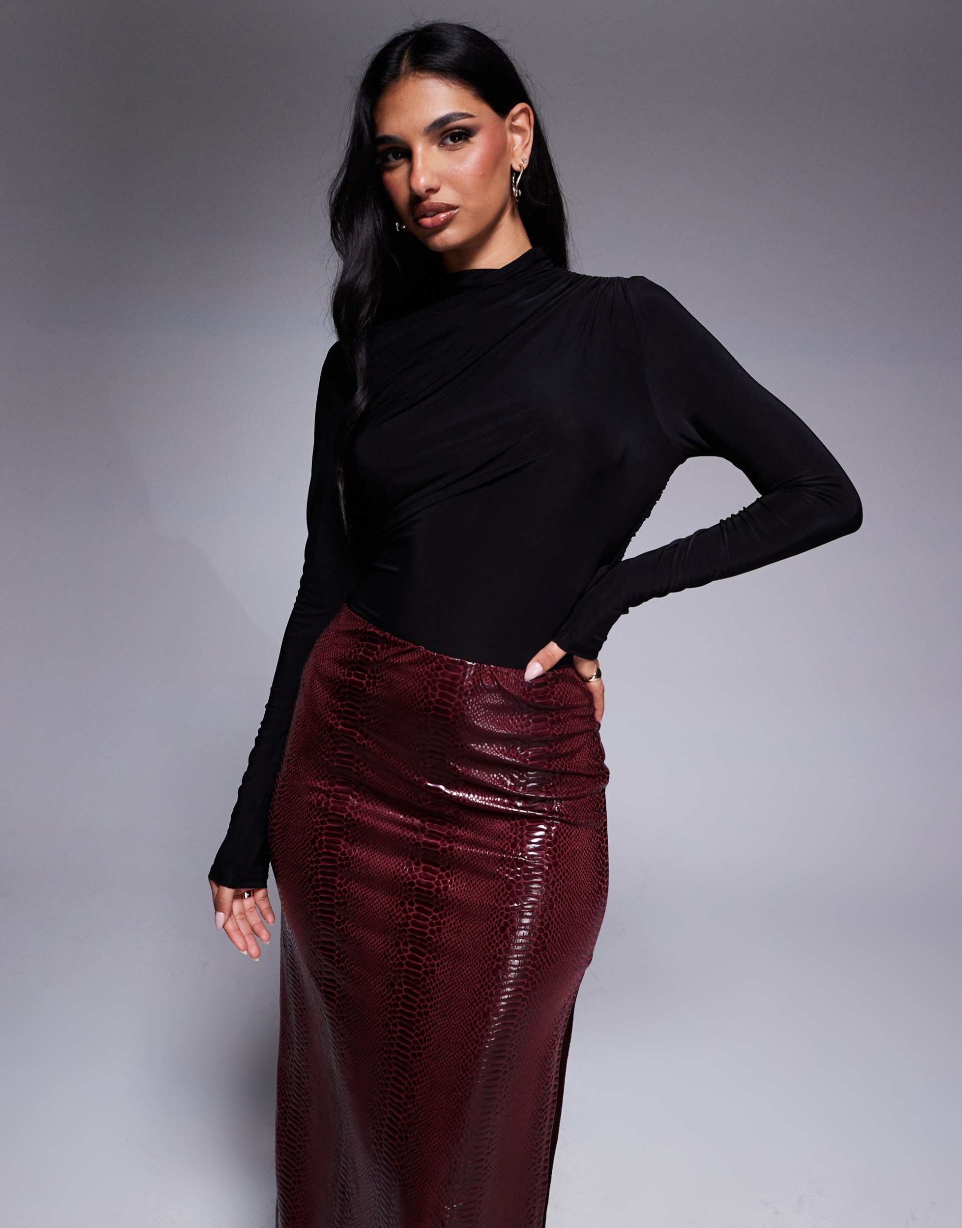 ASOS DESIGN HIGH NECK DRAPE LONG SLEEVE BODYSUIT IN BLACK