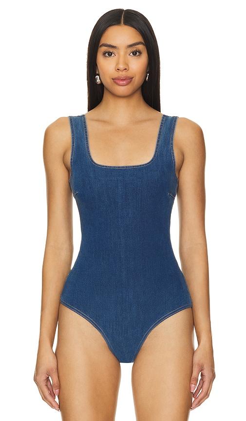 COMMANDO DO IT ALL DENIM SQUARENECK BODYSUIT IN BLUE.