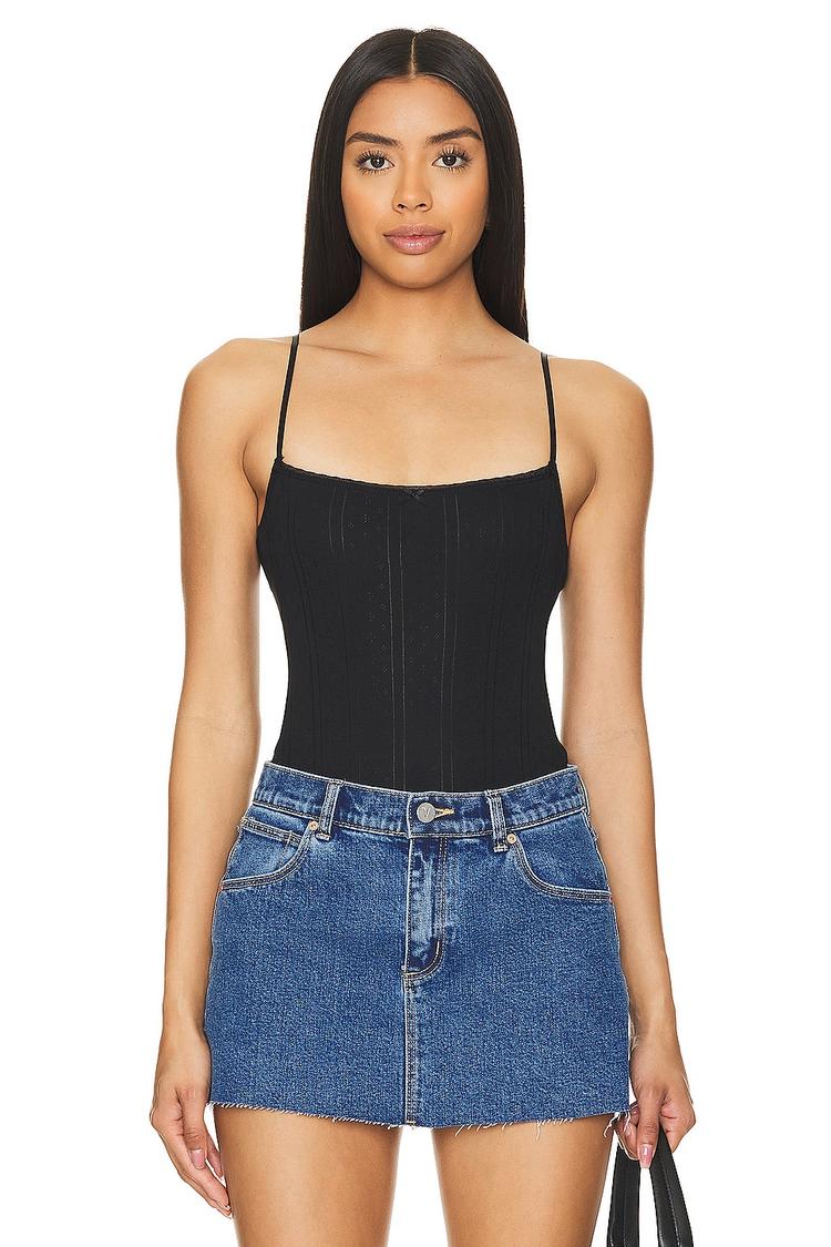 Feel effortless in this sleek Pointelle Bodysuit, a versatile staple that flatters with a fitted, sculpted silhouette. Crafted in a soft organic cotton knit, the black bodysuit features a scoop neckline, slender spaghetti straps, and a subtle pointelle texture that catches the light. Pullover styling and a smooth silhouette under high-rise denim or skirts. Dress it up with a blazer for work-to-weekend chic, or keep it casual with jeans for a sunlit brunch. A timeless piece that pairs with almost anything, it’s comfort-focused and endlessly wearable.