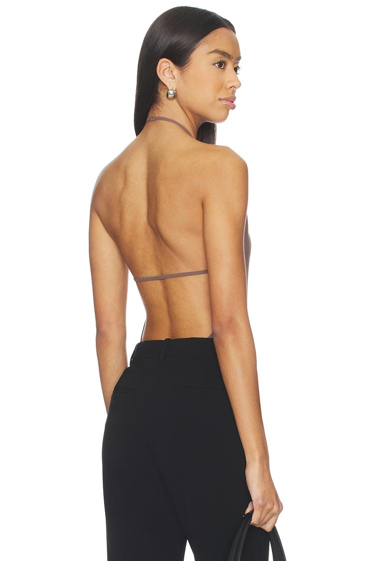 A sleek halterneck bodysuit crafted from lightweight nylon and elastane jersey fabric offers a fitted silhouette that contours the body beautifully. Featuring a matte taupe hue, this strapless piece has a daring thong back with S-hook closure, perfect for layering or standalone wear. Its minimalist, sexy design makes it ideal for casual outings, night outs, or date nights during spring and summer seasons. The pull-on style ensures easy wear, while the tie-back detail adds subtle allure to your look.