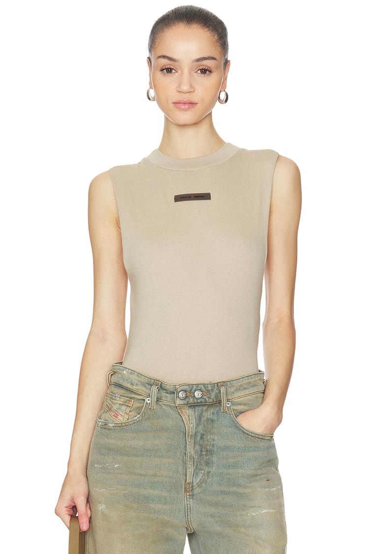 Soft stretch jersey fabric and a close fit define this sleeveless bodysuit with a high neck and cropped length. Crafted from a cotton-polyester-rayon blend, it delivers comfort and ease with a snap button gusset closure and pull-on styling. Its minimalist beige tone and clean silhouette make it an ideal choice for casual outings, everyday wear, and streetwear looks, combining modern simplicity with versatile style.