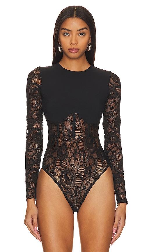 FLEUR DU MAL BONED BODYSUIT IN BLACK.