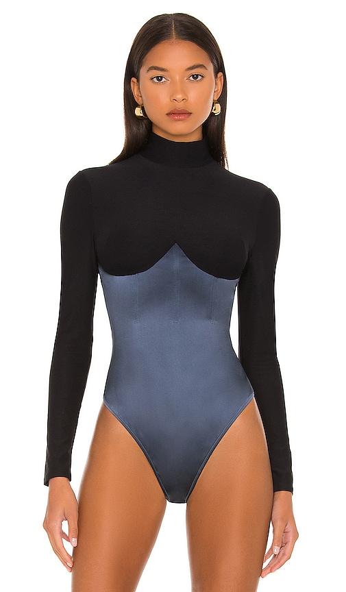 FLEUR DU MAL MOCK NECK LONG SLEEVE BODYSUIT IN BLACK.