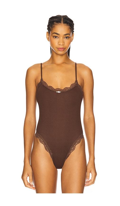 FOR LOVE & LEMONS ELLIANA BODYSUIT IN CHOCOLATE.