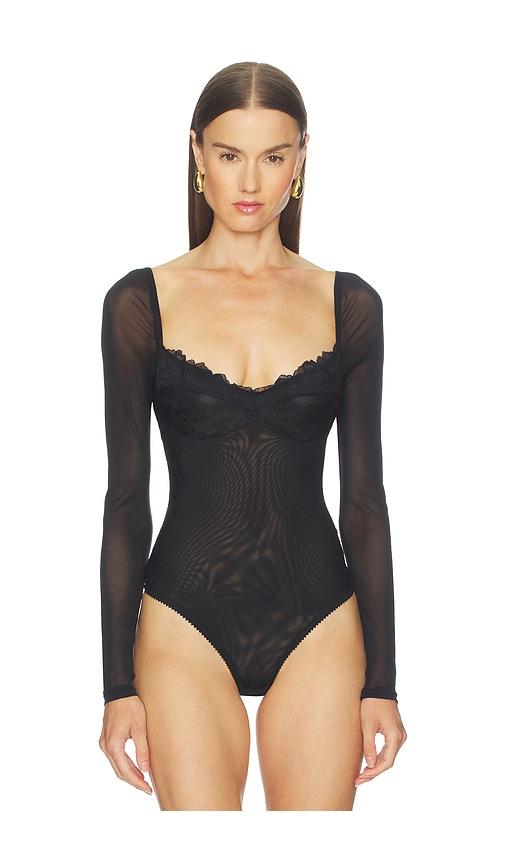 FREE PEOPLE SUDDENLY FINE BODYSUIT IN BLACK.