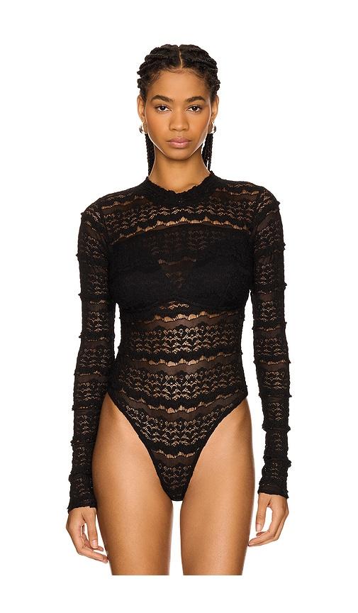 FREE PEOPLE X INTIMATELY FP ANGELINA BODYSUIT IN BLACK.
