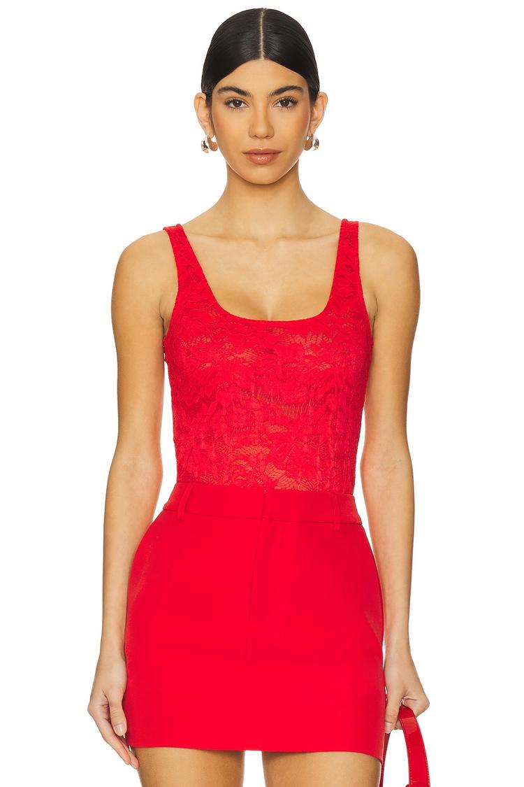 Lightweight lace and a fitted silhouette define this red bodysuit with a flattering U-neck and wide straps. The thong back with snap closure ensures a sleek fit, while the sheer lace design adds a touch of sexy sophistication. Ideal for spring and summer evenings, this cropped bodysuit pairs effortlessly with skirts or pants for casual outings, date nights, or night outs. Its chic style and breathable fabric blend deliver both comfort and allure in one elegant piece.
