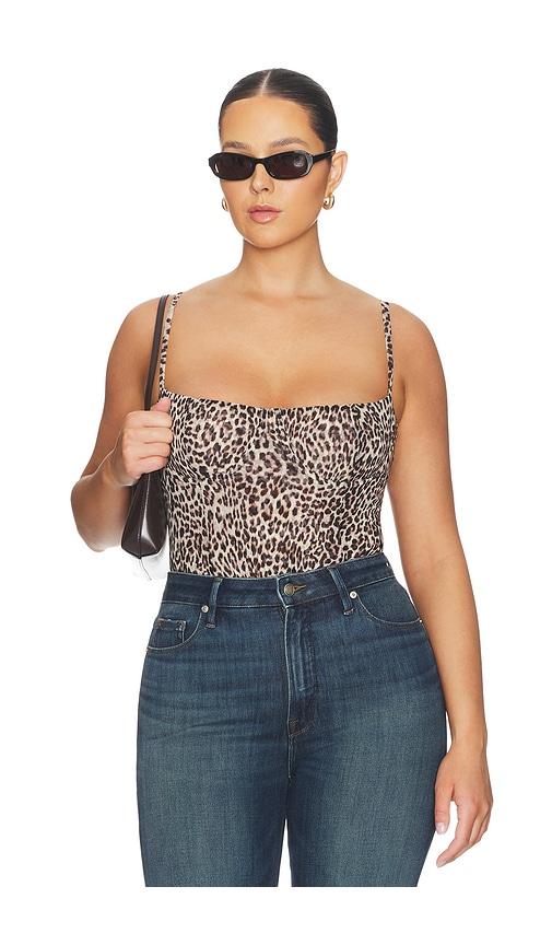 GOOD AMERICAN MESH BUSTIER BODYSUIT IN BROWN.