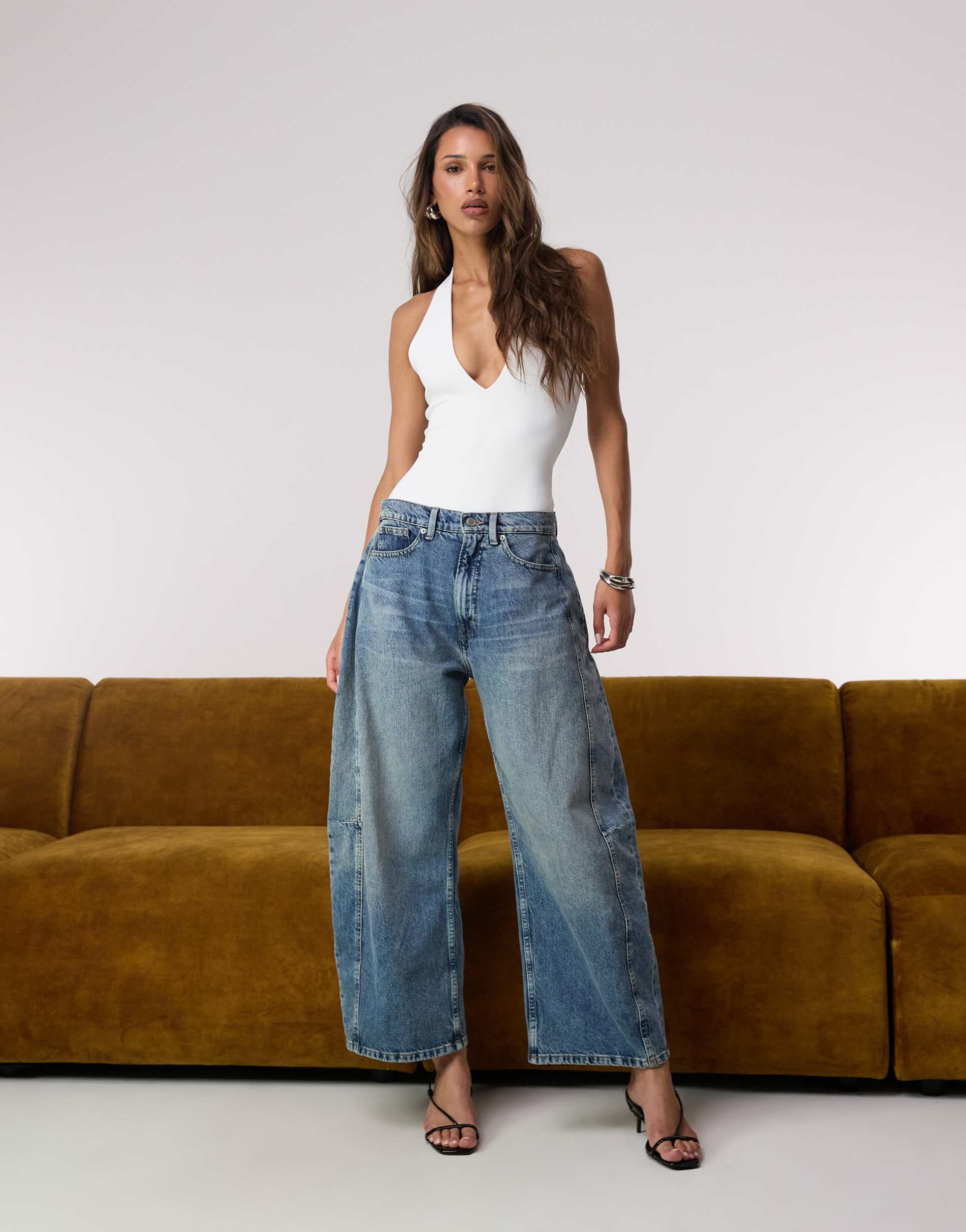 GOOD AMERICAN SCUBA HALTER V NECK BODYSUIT IN WHITE