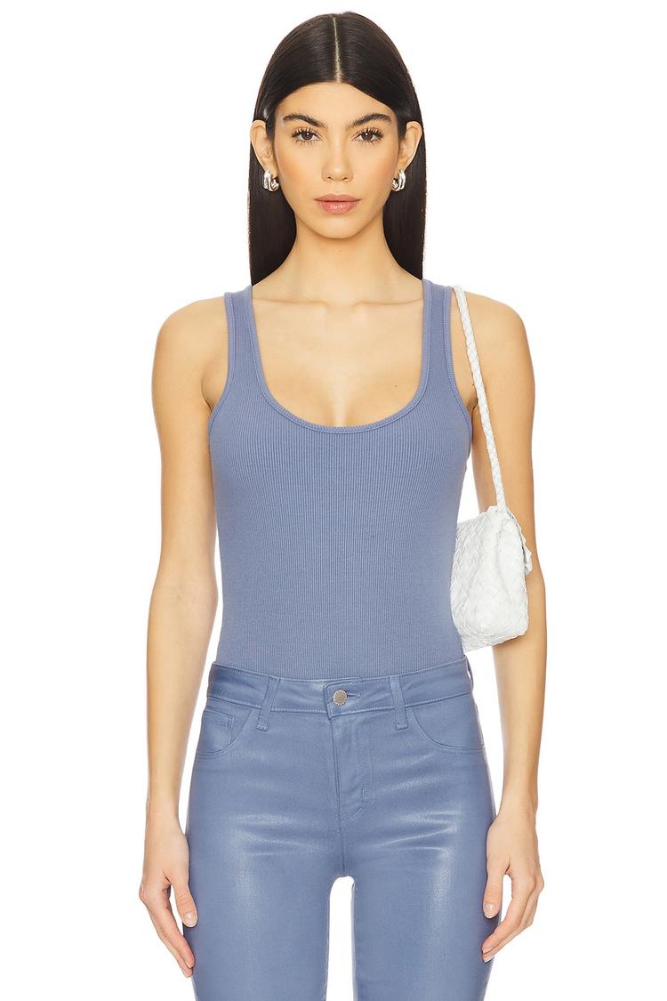 Feel the easy elegance of the Nica Tank Bodysuit in a soft Dusty Blue ribbed knit. This midweight cotton-modal blend with a touch of elastane yields a flattering, contour-hugging silhouette that moves with you. The scoop neckline and sleeveless tank straps frame a clean, minimal line, while the snap gusset closure keeps the look sleek and practical. A hip-length bodysuit with a smooth rib texture, it's built for versatility—pair with high-waisted denim for a casual day out, or tuck into a pencil skirt for a modern, minimalist evening. Effortlessly chic, endlessly wearable.