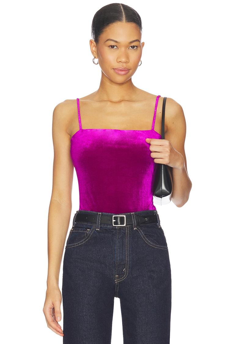 Shimmering fuchsia velvet fabric and a sleek fitted silhouette define this bodysuit with adjustable spaghetti straps and a straight neckline. The stretch fit ensures comfort and ease, while the covered back and snap button closure add practicality. Ideal for casual outings, date nights, and vibrant evening events, this sexy and trendy bodysuit elevates your wardrobe with a modern flair and a luxurious velvet texture perfect for all seasons.