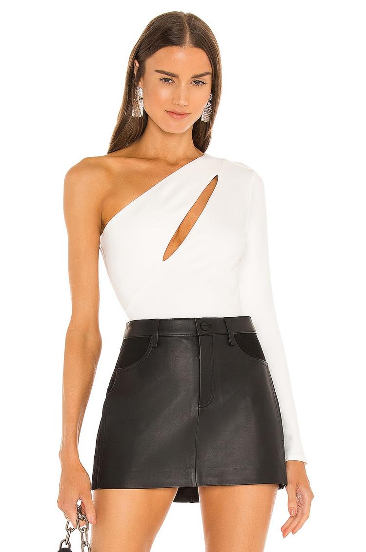 white bodysuit with slit