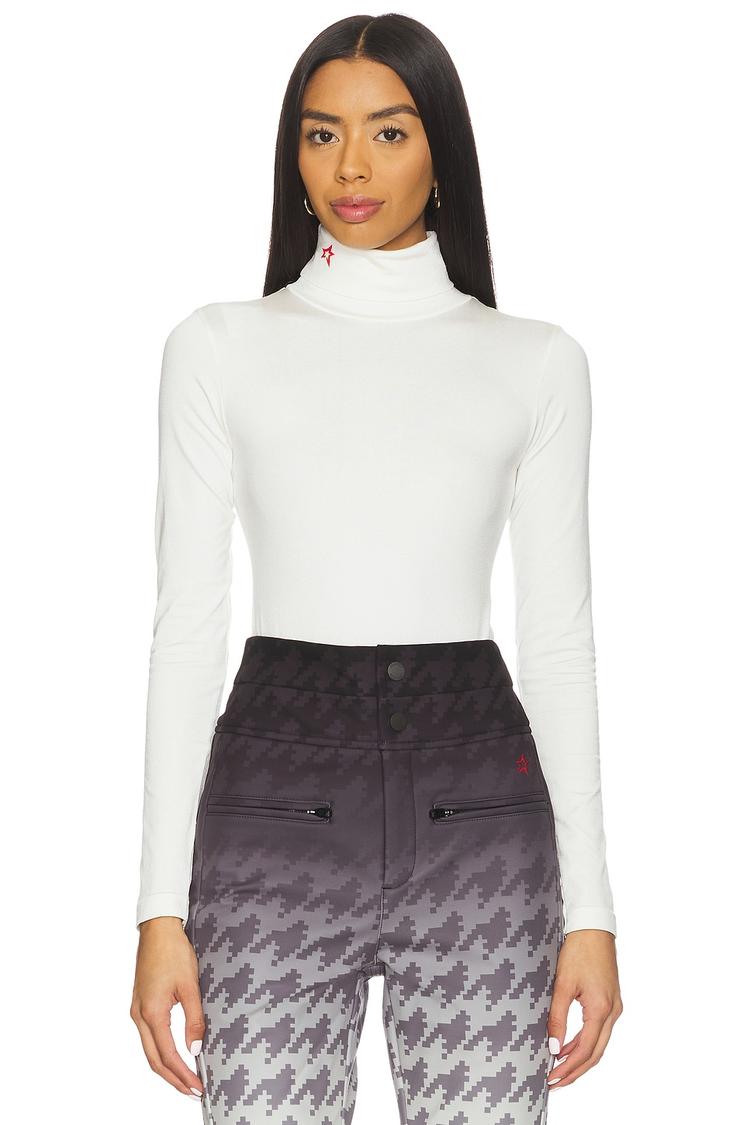 Soft midweight jersey fabric and a close fit shape this white bodysuit with a foldover turtleneck and long regular sleeves. Designed with a thong back and snap gusset closure, it offers a sleek silhouette perfect for layering or standalone wear. Its minimalist, classic style suits casual days, office workwear, and business casual settings during cooler seasons like autumn and winter. The blend of cotton, nylon, and spandex ensures comfort and stretch for all-day wear.