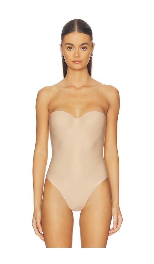 SKIMS BODY MOLDED UNDERWIRE BODYSUIT IN TAN.