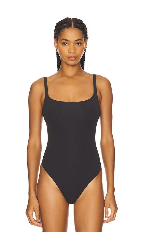 SKIMS FITS EVERYBODY SQUARE NECK BODYSUIT IN BLACK.