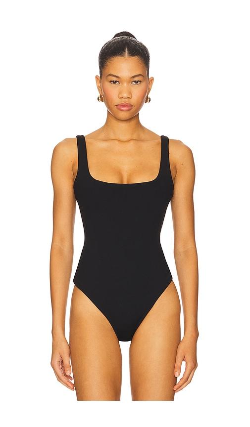 SUSANA MONACO ESSENTIAL LOW BACK TANK THONG BACK BODYSUIT IN BLACK.