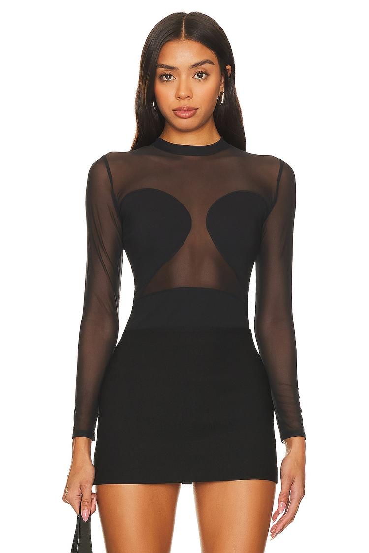 Mesh panels combined with jersey bust and bodice create a striking silhouette in this fitted bodysuit. Featuring a round neckline and long regular sleeves, it offers a modern, chic appeal ideal for night outs, cocktail parties, and date nights. Crafted from a blend of polyester, elastane, viscose, and bamboo, it provides comfort with a hint of stretch. The hidden back zipper and gusset snap button closure with a cheeky back add both style and functionality to this black, sexy piece.