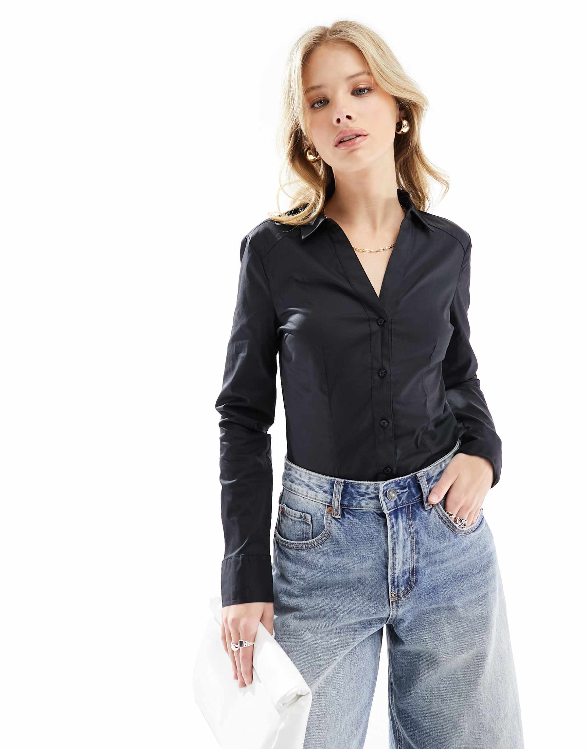 VERO MODA LONG SLEEVED SHIRT BODYSUIT IN BLACK