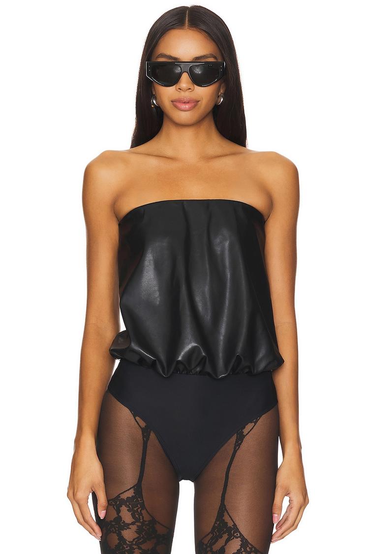 Sleek and daring, this strapless faux leather bodysuit boasts a close fit and cropped length, perfect for showcasing a confident silhouette. Crafted from smooth matte black leather, it features a pullover design with a snap gusset closure for ease and comfort. The strapless neckline and sleeveless styling enhance its modern, chic appeal, making it an ideal choice for casual outings, date nights, or evening events. This versatile piece pairs effortlessly with skirts or trousers for a bold, sexy look that stands out with quiet luxury.
