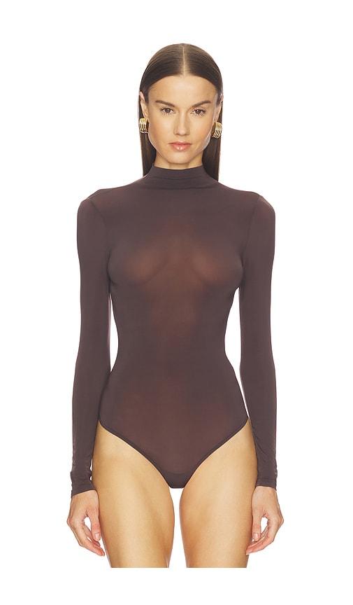 WOLFORD BUENOS AIRES STRING BODYSUIT IN CHOCOLATE.