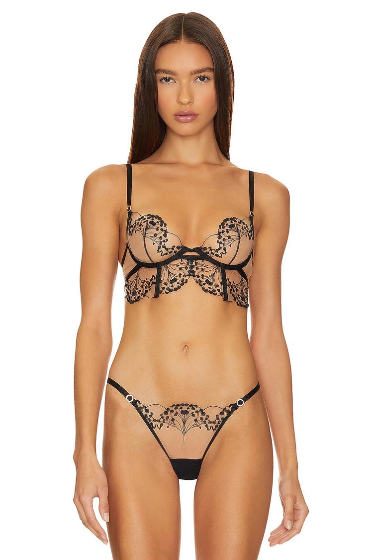 Indulge in the exquisite allure of the Marisa Wired Bra, a stunning blend of romance and elegance. Crafted from sheer mesh fabric adorned with intricate embroidery, this bralette features unpadded underwire cups for a flirtatiously fitted silhouette. The delicate lace trim and sophisticated detailing elevate your intimate collection, perfect for a date night or a special evening out. The secure back hook and eye closure ensures a comfortable fit, while the luxurious feel of the soft nylon blend makes it an irresistible choice for any occasion. Embrace your femininity and radiate confidence from the inside out.