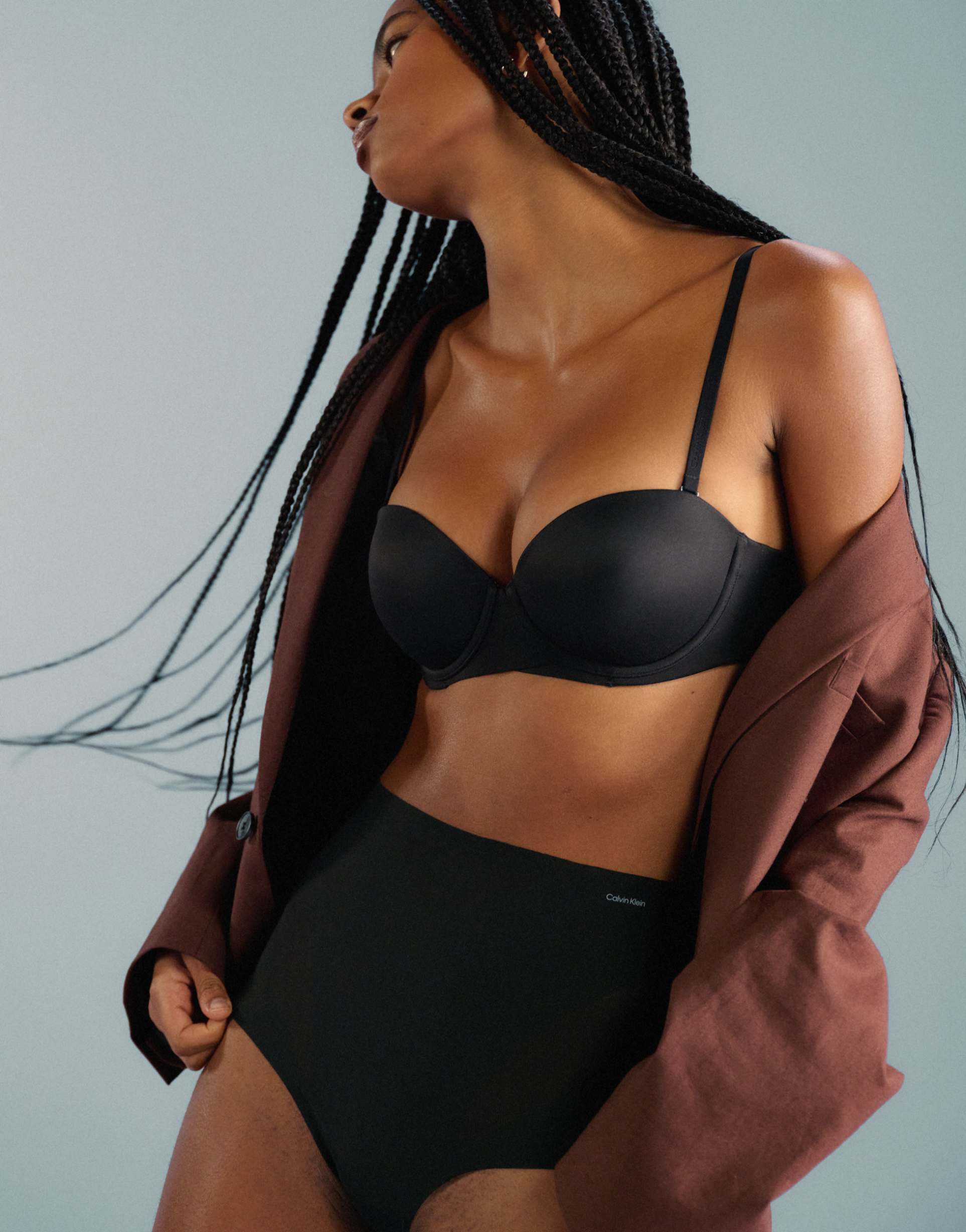 CALVIN KLEIN PERFECTLY FIT STRAPLESS PUSH UP BRA IN BLACK
