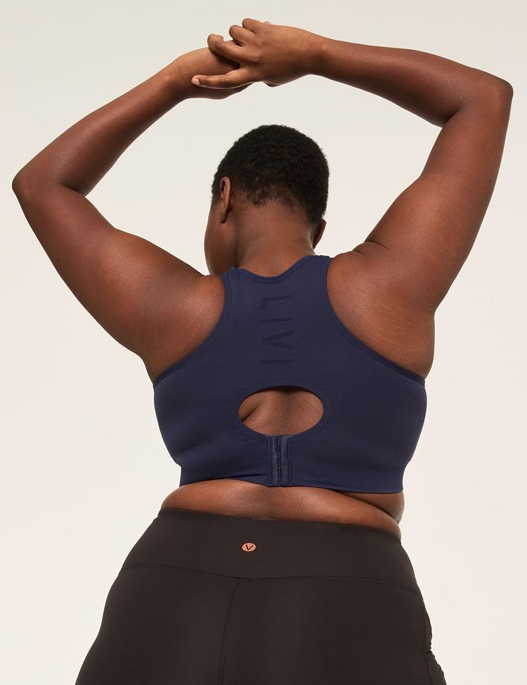 Embrace ultimate comfort and support with the LIVI Wireless Medium-Impact Seamless Sports Bra. Crafted from a lightweight blend of nylon and spandex, this bra features a seamless design that hugs your body like a second skin, ensuring maximum flexibility for your daily activities. With medium coverage and no-wire construction, it's perfect for workouts and casual wear alike. The chic navy hue pairs effortlessly with all your activewear. Ideal for everything from yoga to running errands, this sports bra is your go-to for reliable support and style. Feel confident and move freely all day long.
