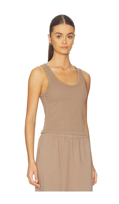 PERFECTWHITETEE STRUCTURED RIB BRA FRIENDLY TANK IN BROWN.
