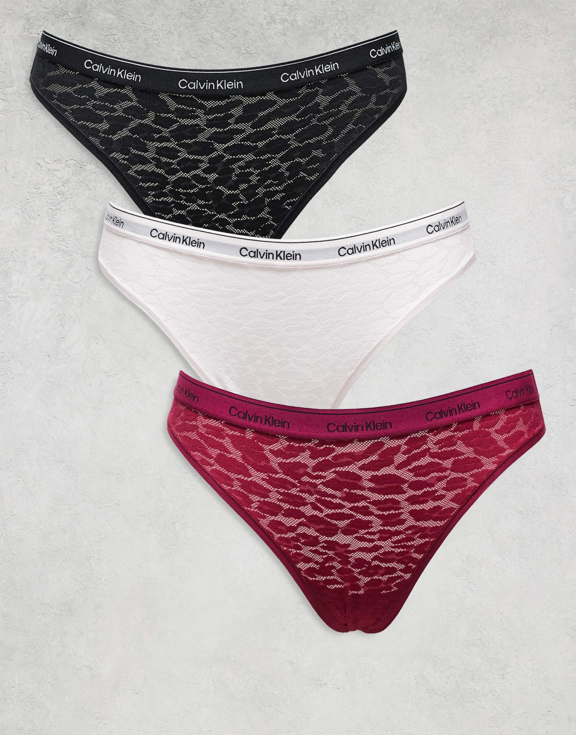 CALVIN KLEIN ICON LACE 3 PACK BIKINI BRIEFS IN BERRY/BLACK/BLUSH PINK
