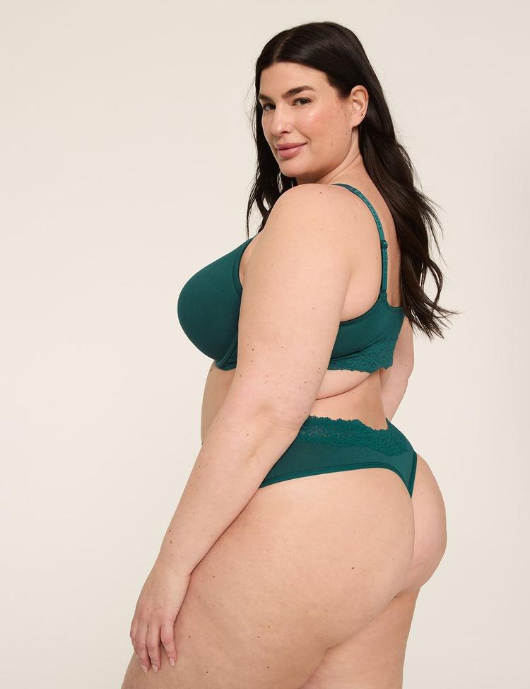Available in Plus Size A barely-there (but feels like nothing) thong crafted in breathable-soft cotton. FIT: Thong. Your sexy, barely-there solution to pesky panty lines. Sits below the belly button at the top of the hipMinimal booty coverage for no visible panty lines FEATURES: Lace trim Stay-put (all day!) elastic waistband that won't dig in FABRIC: Cotton. Easy, everyday comfort stretch cotton. The touch of spandex gives the perfect amount of stretch that stays put and moves with you. Machine Wash Body: 95% Cotton/5% Spandex Lace: 88% Nylon/12% Spandex WHY OUR PANTIES ARE THE BEST FOR CURVES: We design, test and refine on real bodies for the ultimate curve-perfect fit for every body Our feel-good elastics stay put-no slips or digs Our unique-for-curves construction keeps you wedgie-free We reinforce the softest threads for extra-secure seams that last wash after wash Item Number #411969 Imported Plus Size Panty Cacique Intimates ". Plus Size Cotton Lace-Waist Thong, in June Bug, 26/28, Women's, Cacique for Lane Bryant