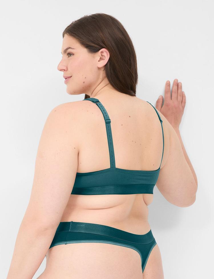 Available in Plus Size A wide-side (i.e., less digging) thong in soft, stretchy cotton with exposed elastic waistband. Bare back eliminates panty lines. Item Number #240118Imported plus size pantyCacique Intimates". Plus Size Cotton Thong Panty with Wide Waistband, in Deep Teal, 14/16, Women's, Cacique for Lane Bryant