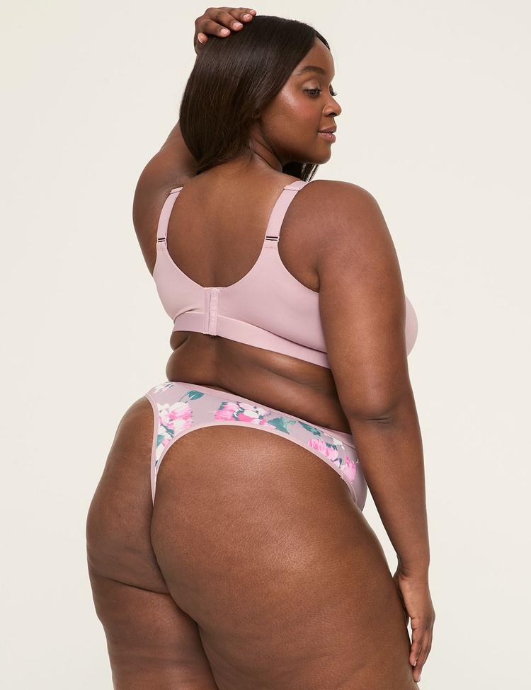 Available in Plus Size A no-show french cut thong that disappears under clothes thanks to flat, stay-put elastic. High waist. Bare back eliminates panty lines. Item Number #374785 Imported Plus Size Panty Cacique Intimates". Plus Size No-Show French Cut Thong, in Dusk Floral Elderberry, 14/16, Women's, Cacique for Lane Bryant