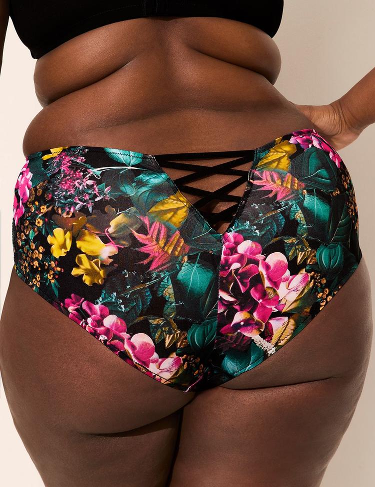 Available in Plus Size Irresistible lace and sultry straps make this cheeky brief a (post) date-night necessity. FIT: Cheeky Brief. More coverage than a thong with a flirty "cheek peek". Sits below the belly button at the top of the hipMinimal booty coverage FEATURES: Bow at center front Lace trim Strappy back 100% Cotton lined gusset FABRIC: Soft, smooth microfiber fabric Machine Wash 92% Nylon/8% Spandex WHY OUR PANTIES ARE THE BEST FOR CURVES: We design, test and refine on real bodies for the ultimate curve-perfect fit for every body Our feel-good elastics stay put-no slips or digs Our unique-for-curves construction keeps you wedgie-free We reinforce the softest threads for extra-secure seams that last wash after wash Buy the matching bra Item Number #411730 Imported Plus Size Lingerie Cacique Intimates ". Plus Size Strappy-Back Cheeky Brief Panty, in Sexy Mystic Floral, 26/28, Women's, Cacique for Lane Bryant