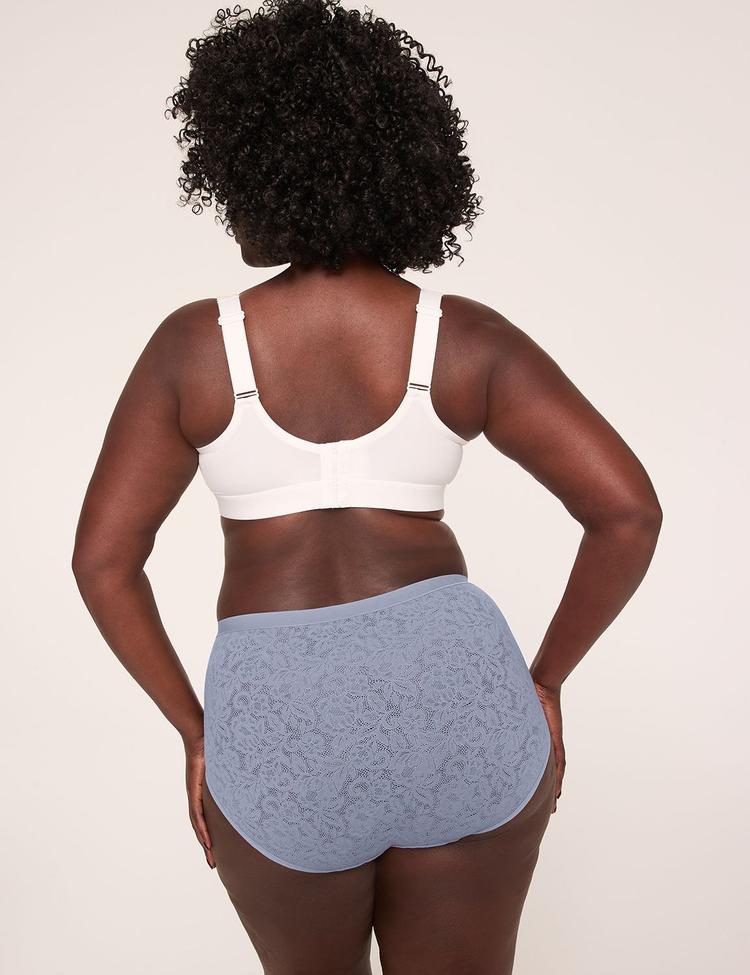 Available in Plus Size Treat your tush to so-soft lace that stretches with your every move (while staying in place all day!). You'll love this high-leg brief cut, now with no-show elastic (AKA instantly disappears under clothes) at the waist and legs. FIT: High-Leg Brief. Comfy, full coverage with a high-cut leg that lengthens for a flattering fit.Sits just above the belly buttonHigher cut leg FEATURES: Comfy lace waistband that stays in place (all day!) No-Show elastic at waist and legs Bow at front 100% Cotton-lined gusset FABRIC: Stretch Lace. Sexy, 4-way stretch lace with a forget-you-have-them-on-feeling. Machine Wash Warm With Like Colors Only Non-Chlorine Bleach When Needed Tumble Dry Low Cool Iron If Needed Body: 67% Nylon/33% Spandex Gusset: 100% Cotton WHY OUR PANTIES ARE THE BEST FOR CURVES: We design, test and refine on real bodies for the ultimate curve-perfect fit for every body Our feel-good elastics stay put-no slips or digs Our unique-for-curves construction keeps you wedgie-free We reinforce the softest threads for extra-secure seams that last wash after wash Item Number #412739 Imported Plus Size Panty Cacique Intimates ". Plus Size Tailored Stretch Lace High-Leg Brief Panty, in Stonewash, 18/20, Women's, Cacique for Lane Bryant