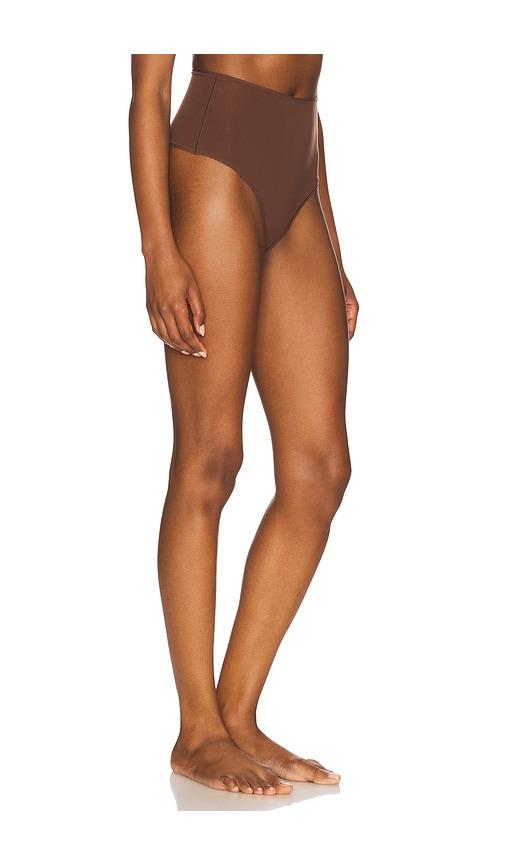 SKIMS FITS EVERYBODY HIGH WAISTED THONG IN CHOCOLATE.