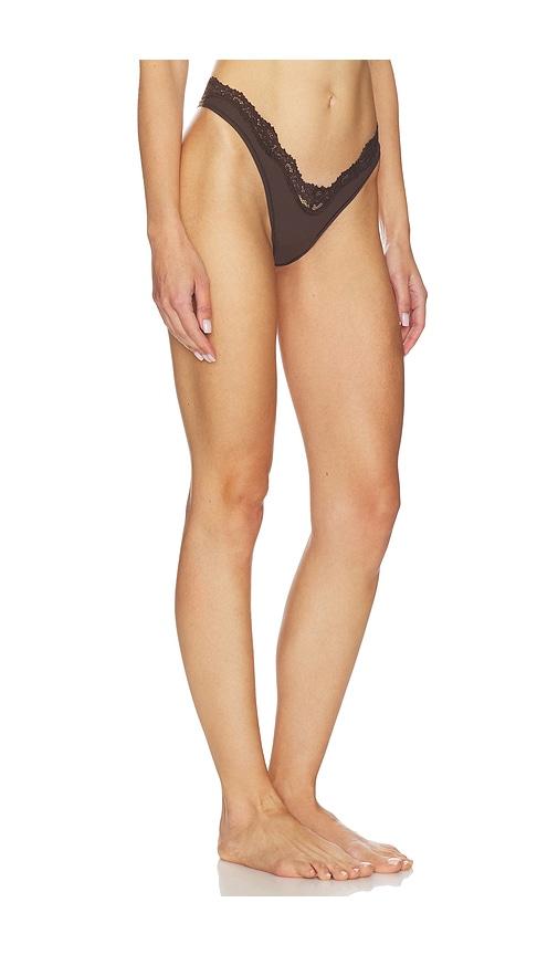 SKIMS FITS EVERYBODY LACE DIP THONG IN BROWN.