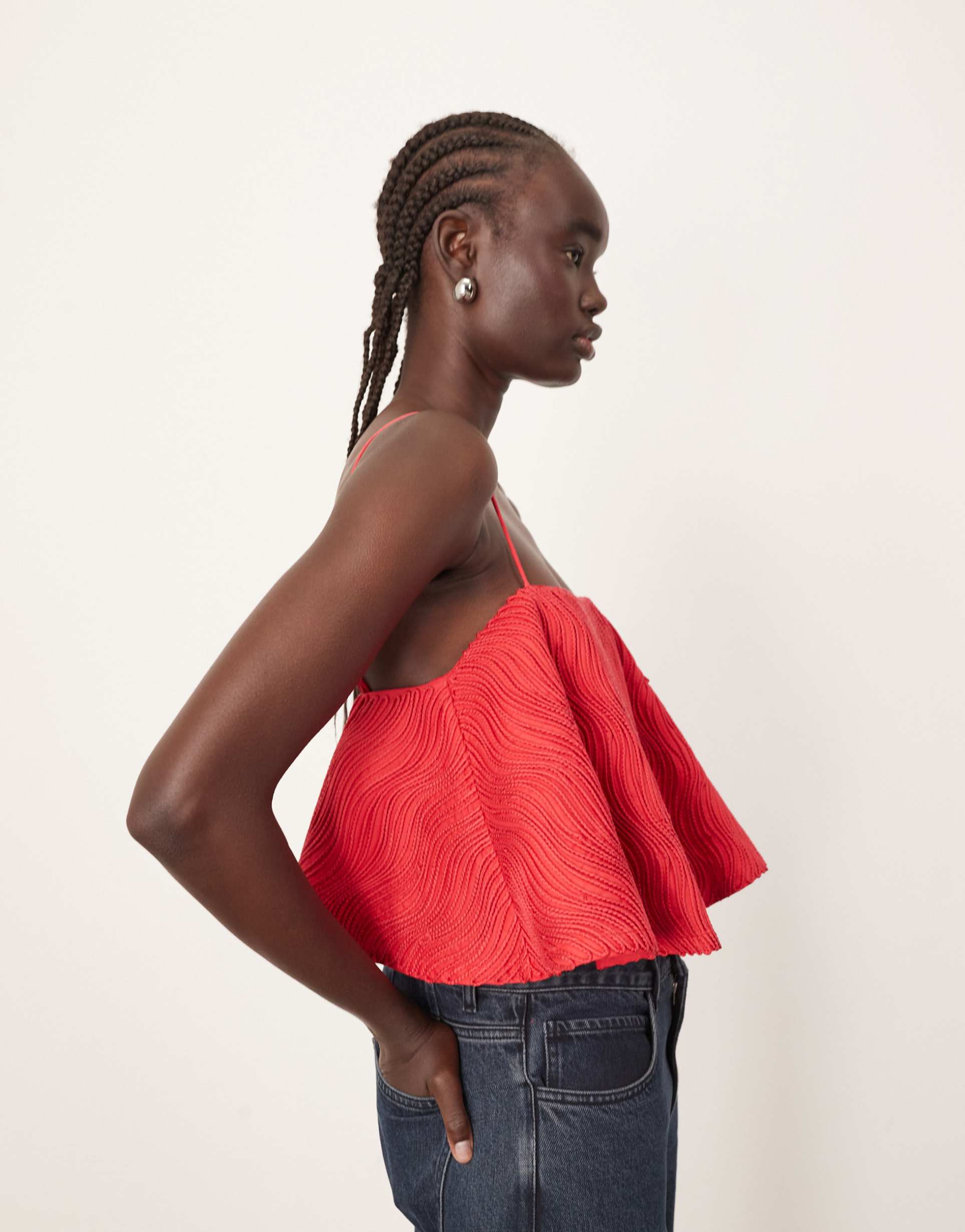 ARRANGE WAVY TEXTURE STRUCTURED TRAPEZE CAMI TOP IN RED